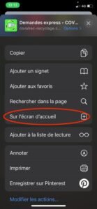 Après apparition de l’icône sur votre smartphone, un clic ouvre la page.